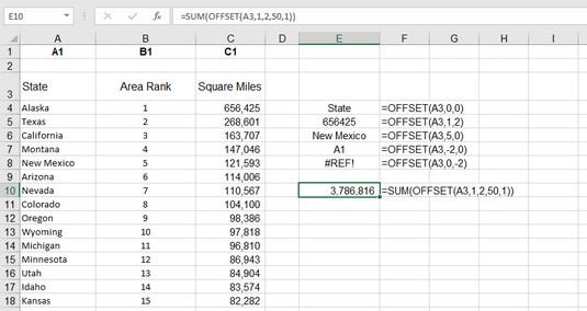 Returns a reference to a range that is a given number of rows & columns from a given reference.